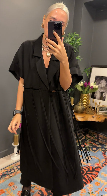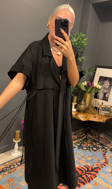 İçi astarlı ithal krep kumaş ile üretilmiş bağcık ve düğme detaylı kimono.