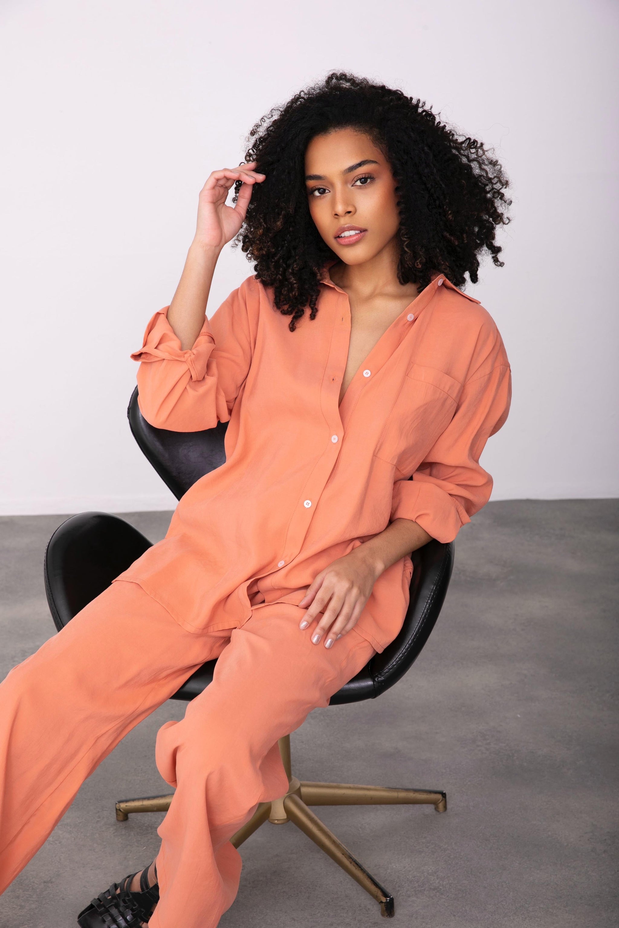 Model içerikli kumaş ile rahat ve şık pantolon. beli lastikli.