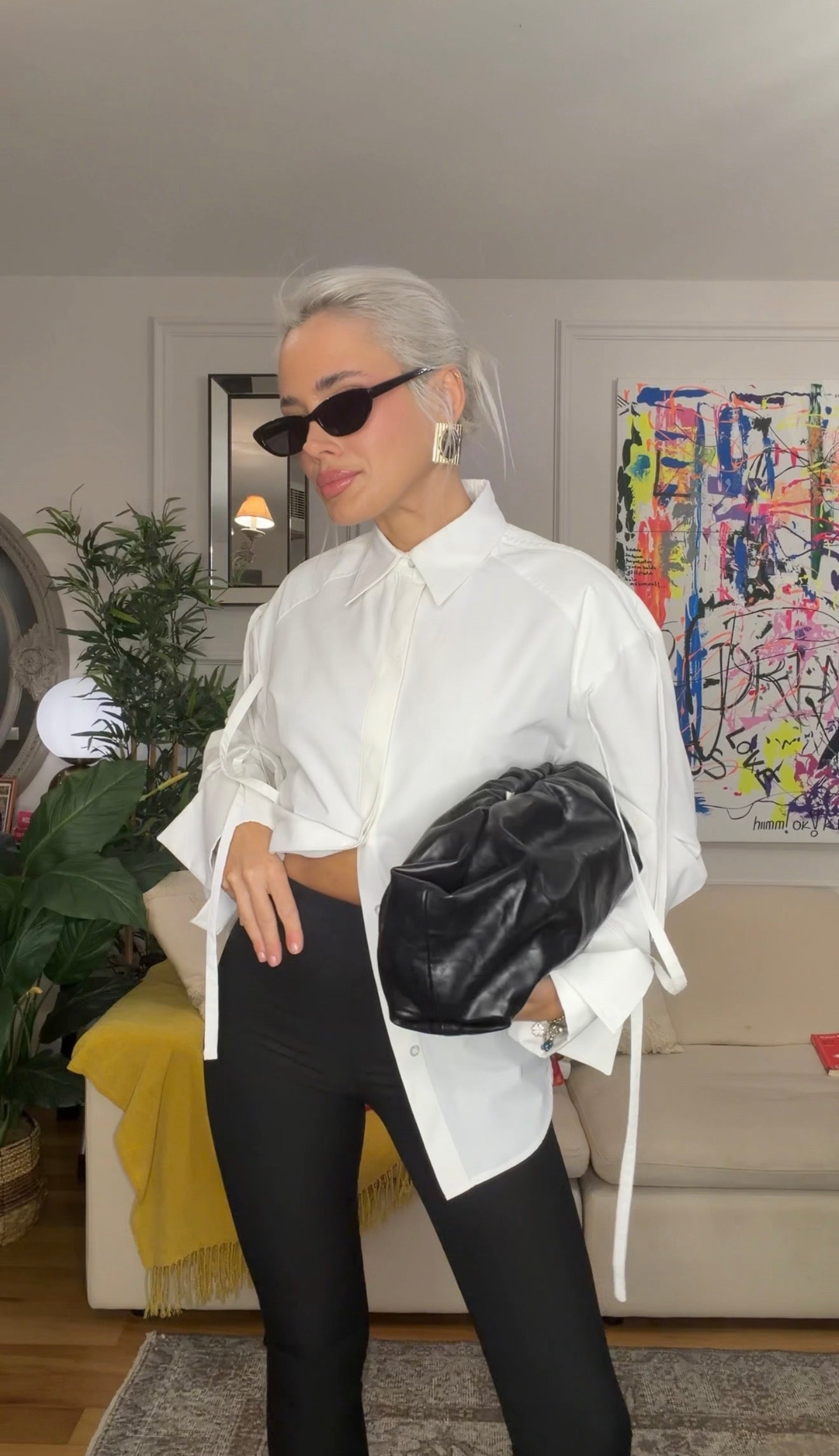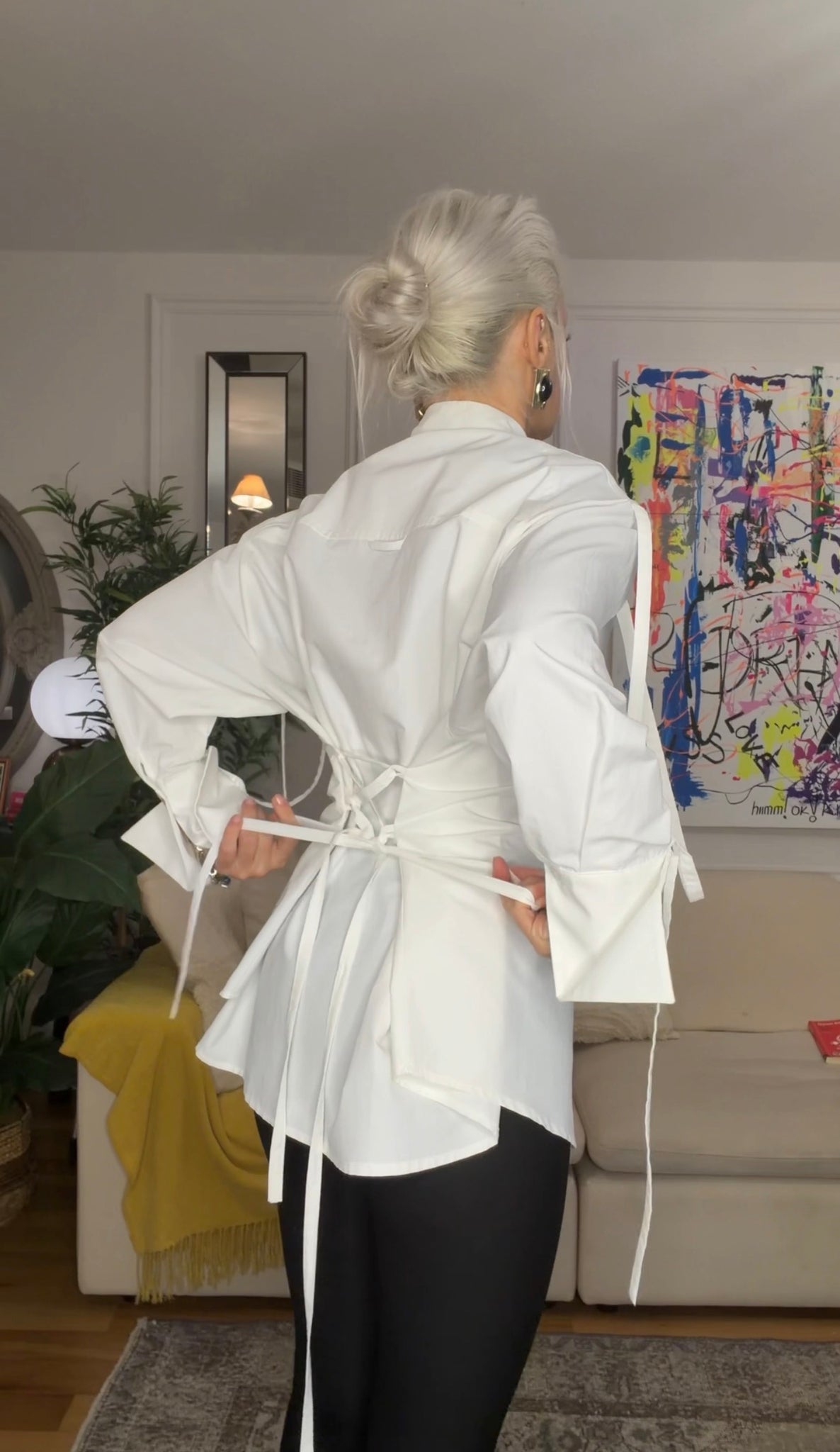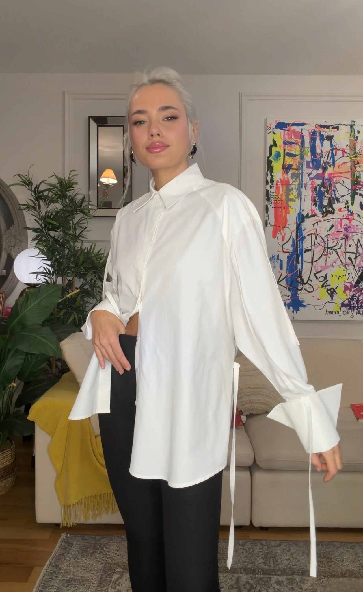 Arka bedende bağlamalı kollarda ve omuzda şerit detayları olan oversize gömlek. Benzersiz manşet tasarımı ile zamansız kusursuz tasarım gömlek.