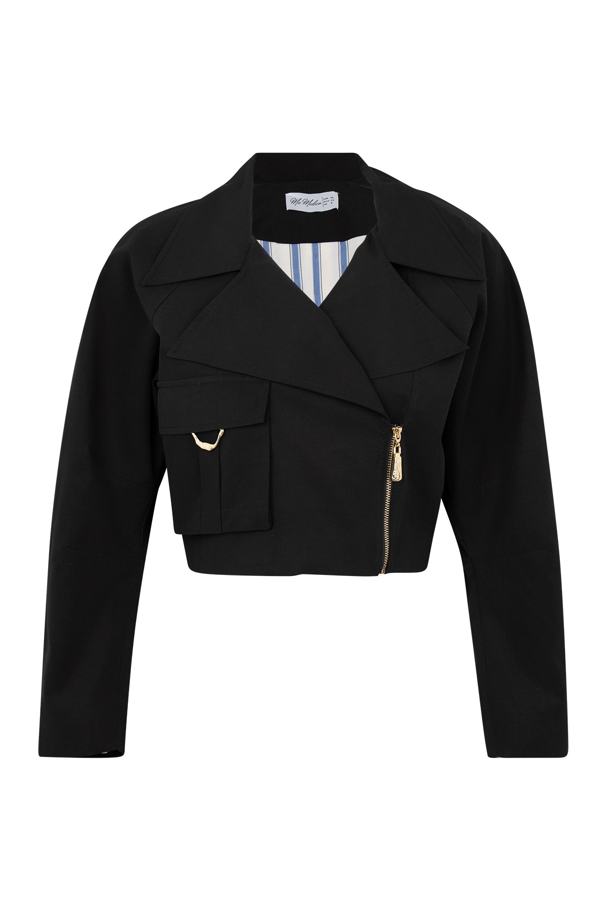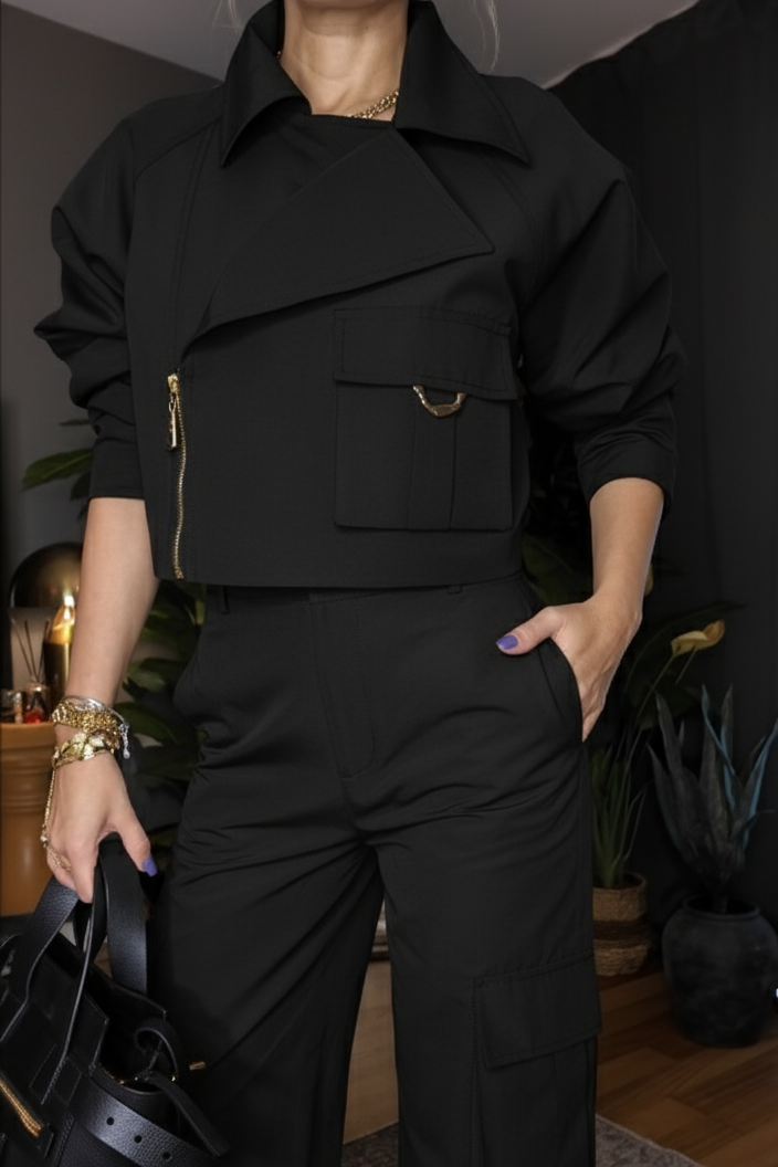 Klasik trençkot formunun modern yorumu olan Masca Kısa Trençkot, yan fermuarı, körüklü cep detayı ve gold metal aksesuarıyla güçlü ama zarif bir görünüm sunar. Astarı sayesinde konforlu bir kullanım sağlarken, yapılandırılmış formu gün boyu formunu korur. Kısa kesimiyle şehirli, modern ve dikkat çekici bir stilin anahtar parçasıdır.