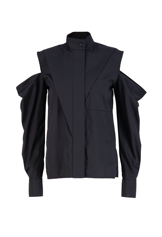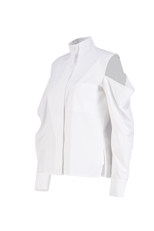Omuzları pencere detaylı rahat kesim tasarım gömlek