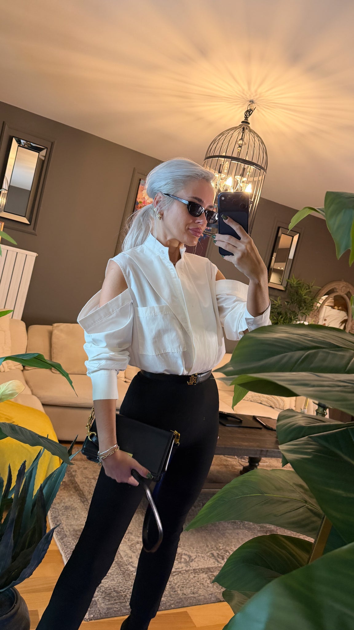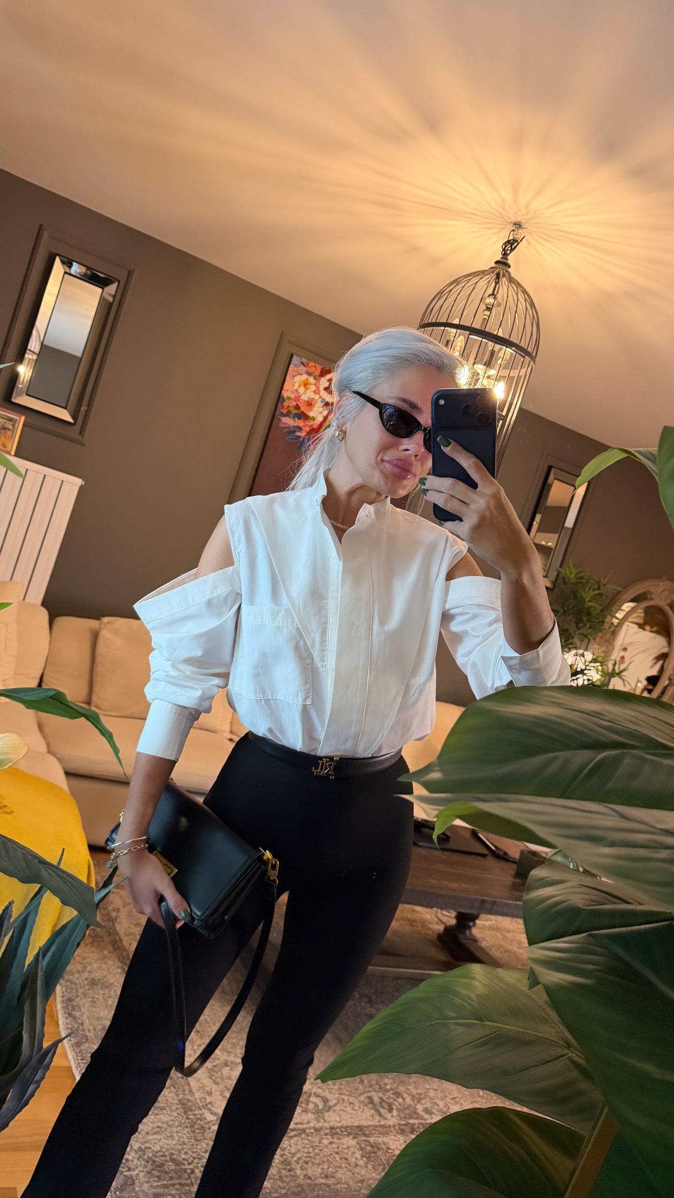 Omuzları pencere detaylı rahat kesim tasarım gömlek